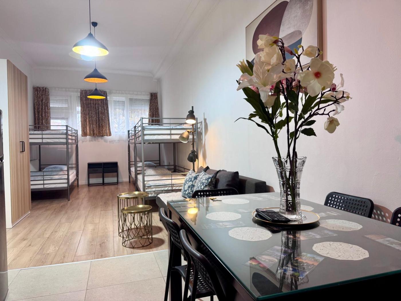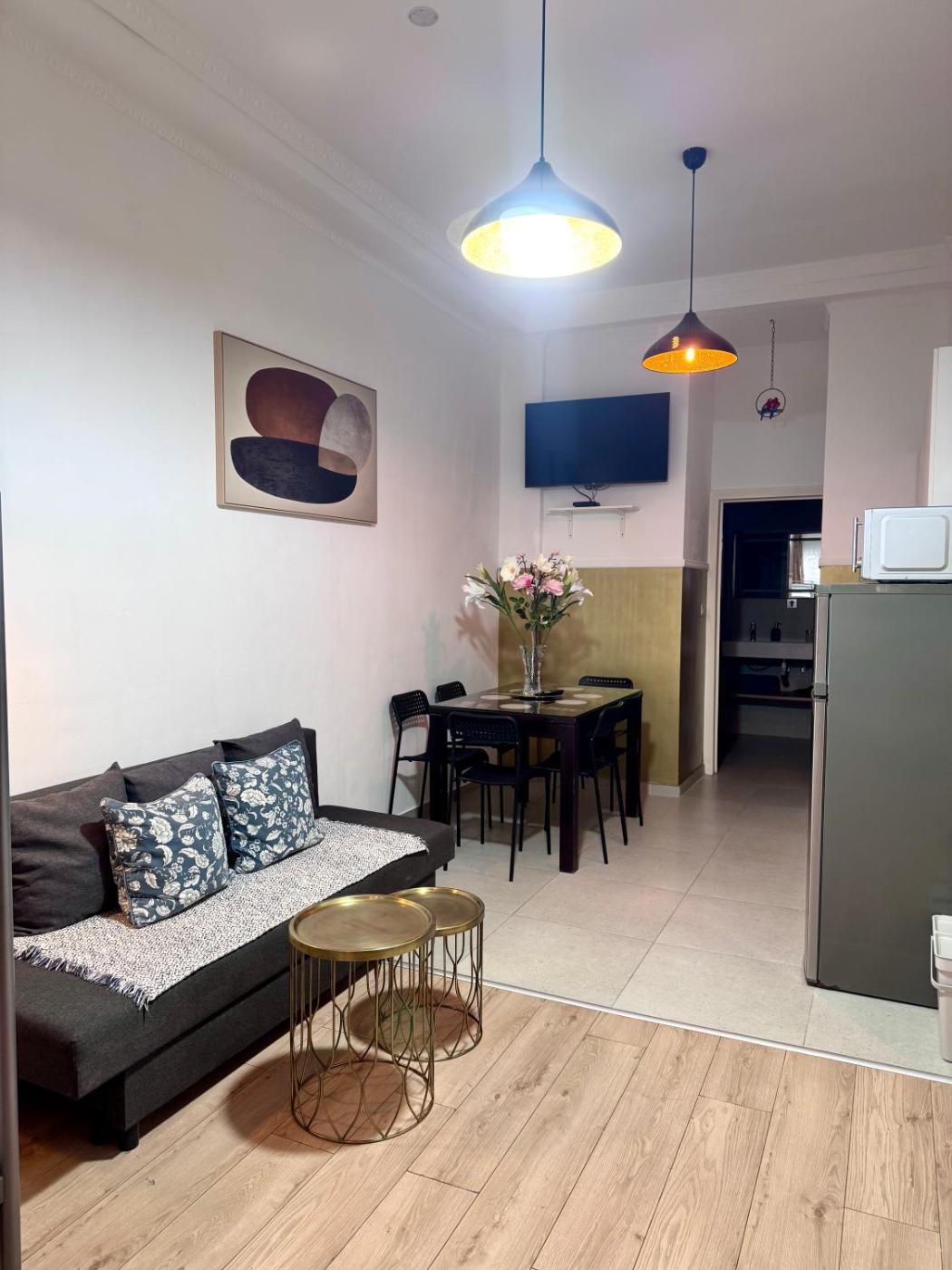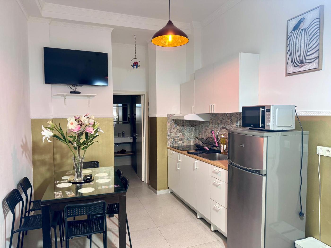 Studio Apartment. The apartment features 1 bedroom and 1 bathroom with a shower and free toiletries. In the kitchen, guests will find a stovetop, a refrigerator, kitchenware and a microwave. This apartment has a tea and coffee maker, flat-screen TV with cable channels, city views, as well as chocolate for guests. The unit offers 4 beds.