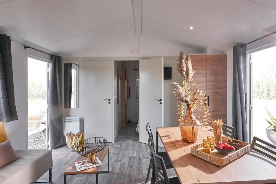 Mobile Home. Family bungalows can accommodate 4 to 5 people depending of the model and include a seating and dining area. There is a fully-equipped kitchen, flat-screen satellite TV and electric heaters. There is also a bathroom with shower. Pet are not allowed. Bed sheets not provided and mandatory ;