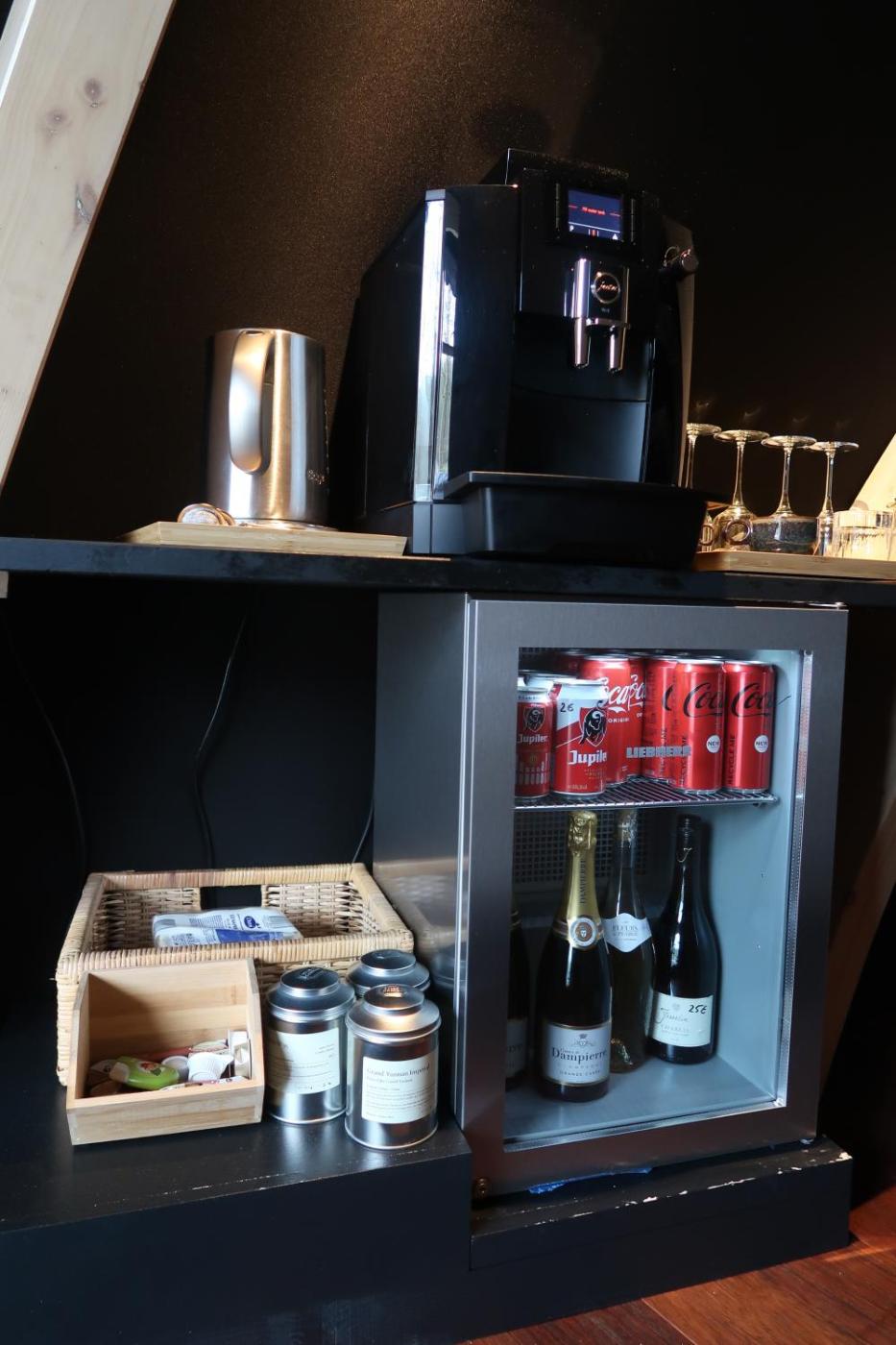 Room8. This tent features a hot tub and a fireplace. Guests will find a stovetop, a refrigerator, kitchenware and a microwave in the fully equipped kitchenette. The tent also comes with a barbecue. This air-conditioned tent is comprised of a flat-screen TV with cable channels, a private bathroom as well as a terrace with lake views. The unit has 1 bed.