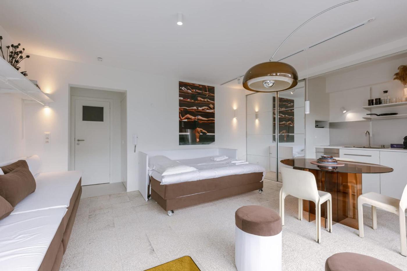 Studio. This studios standout feature is the sauna. The well-fitted kitchen has a stovetop, a refrigerator, a dishwasher and kitchenware. The studio offers a TV, a washing machine, a private entrance, a tea and coffee maker as well as city views.