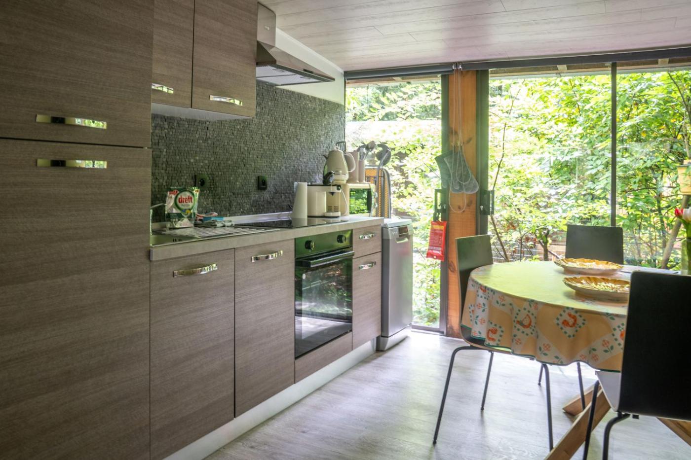 The chalet has 1 bedroom, 1 bathroom, bed linen, towels, a flat-screen TV with streaming services, a dining area, a fully equipped kitchen, and a terrace with garden views. Guests can take in the ambience of the surroundings from an outdoor dining area. For added privacy, the accommodation has a private entrance and soundproofing.
