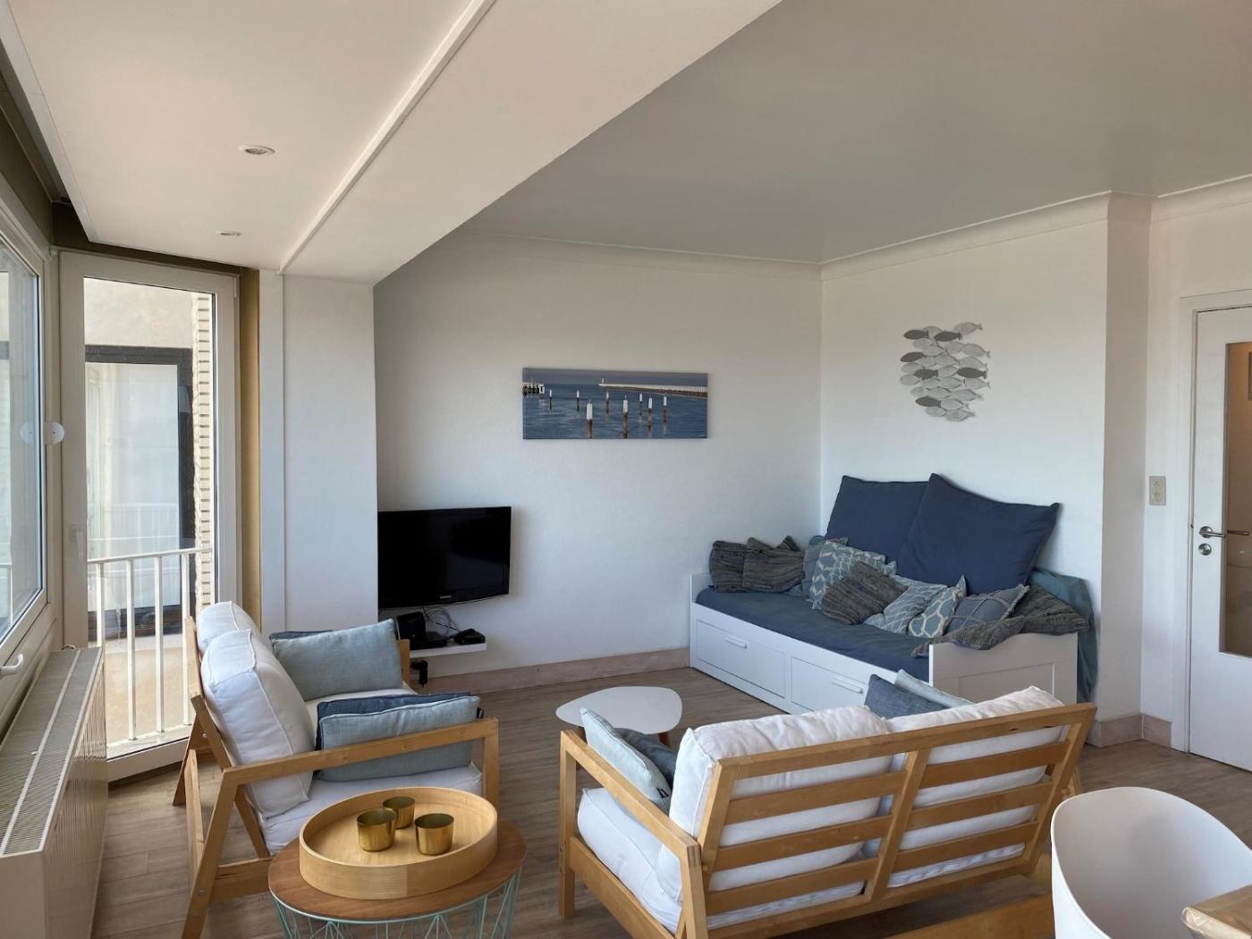 Three-Bedroom Apartment. This spacious apartment comprises 1 living room, 3 separate bedrooms and 1 bathroom with a bath and a shower. Meals can be prepared in the well-fitted kitchen, which comes with a stovetop, a refrigerator, a dishwasher and an oven. Featuring a terrace with sea views, this apartment also provides a washing machine and a TV with cable channels. The unit offers 5 beds.