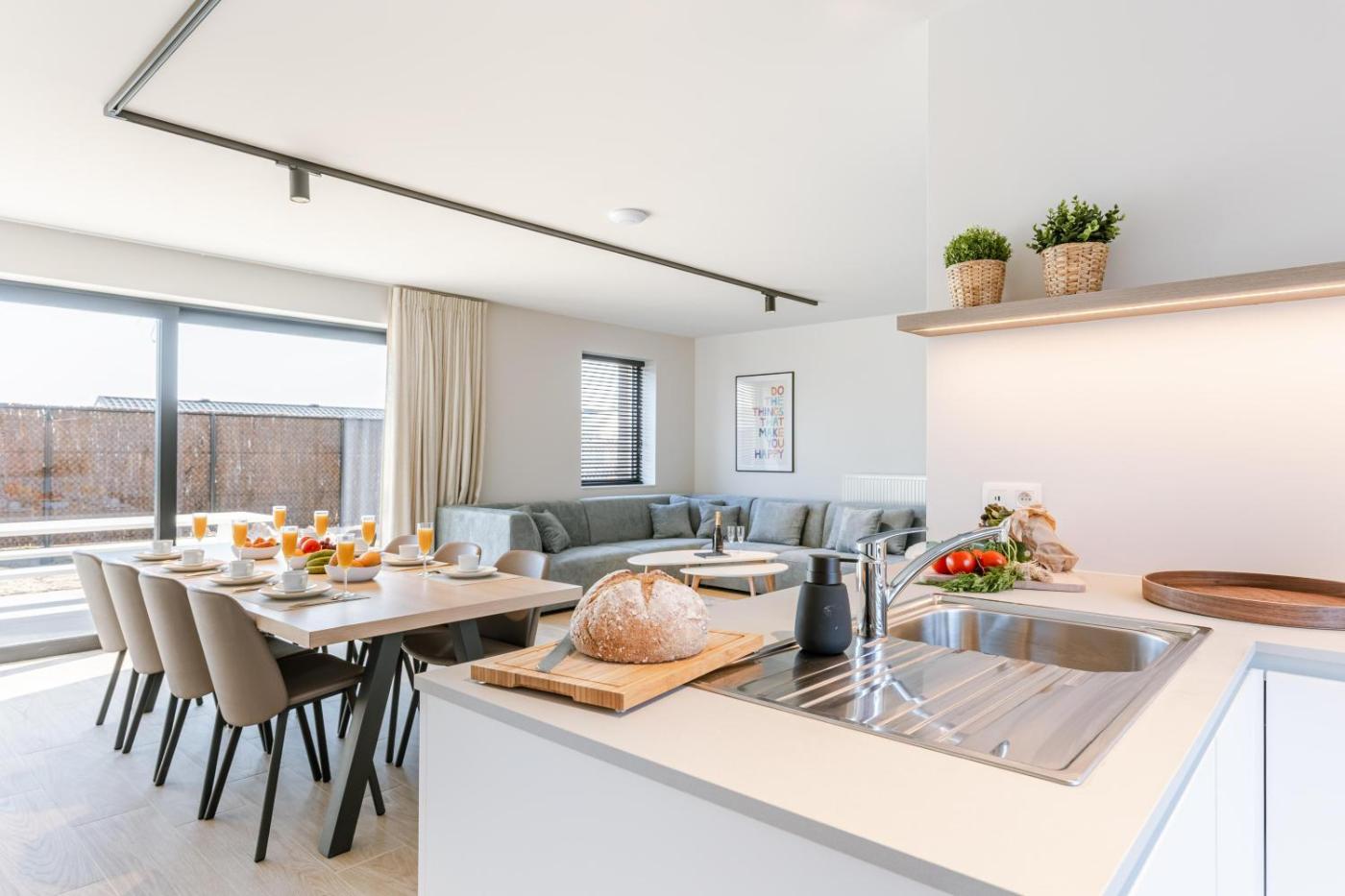 Four-Bedroom House. This spacious holiday home includes 1 living room, 4 separate bedrooms and 2 bathrooms with a bath and a shower. In the fully equipped kitchen, guests will find a stovetop, a refrigerator, a dishwasher and kitchenware. The air-conditioned holiday home offers a flat-screen TV, a washing machine, a coffee machine, a seating area as well as garden views. The unit has 4 beds.