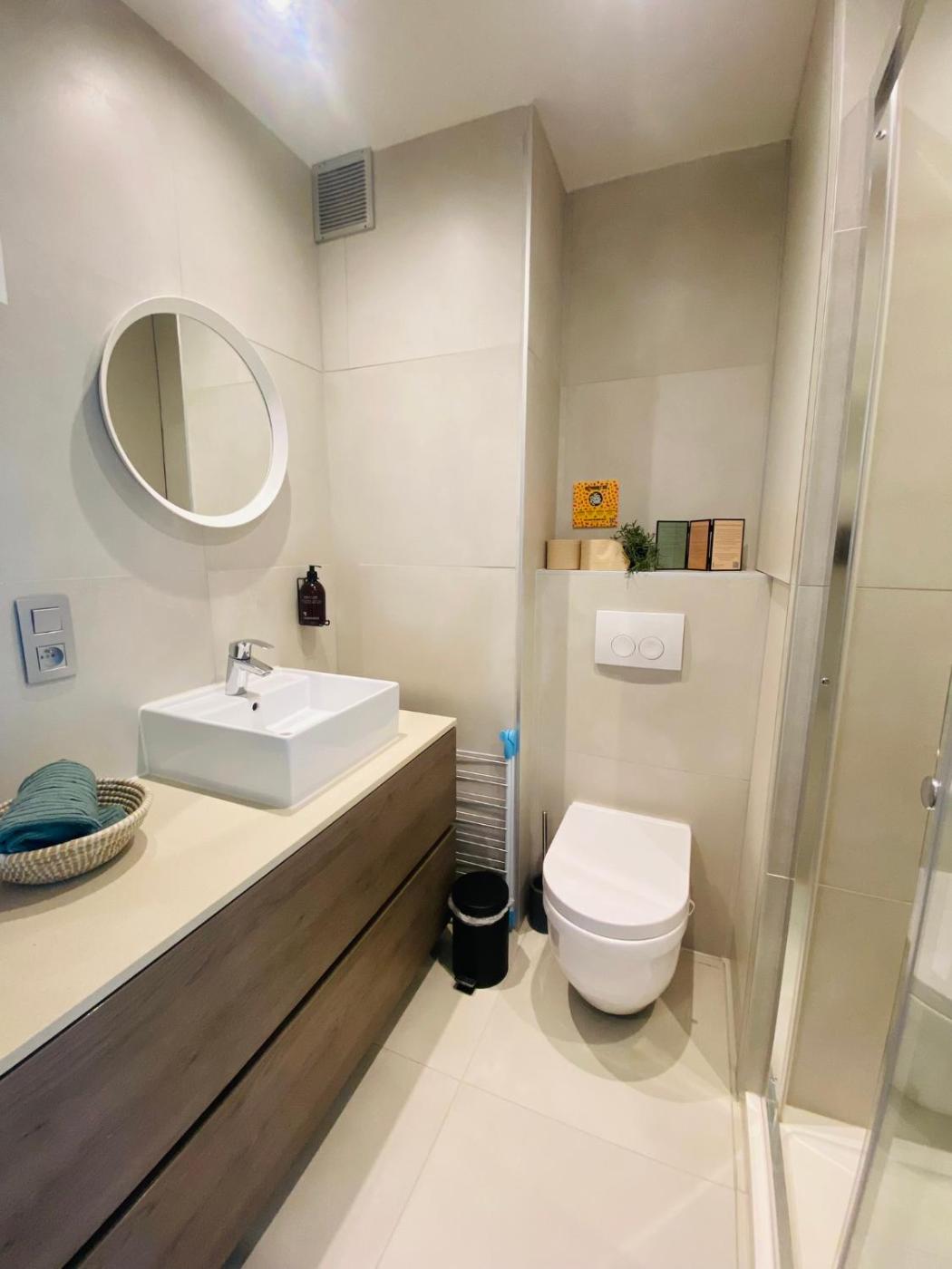 One-Bedroom Apartment. This apartment features 1 living room, 1 separate bedroom and 1 bathroom with a shower and a hairdryer. In the fully equipped kitchen, guests will find a stovetop, a refrigerator, a dishwasher and kitchenware. The apartment features a coffee machine, a seating area, a dining area, a flat-screen TV with streaming services, as well as a quiet street view. The unit has 3 beds.