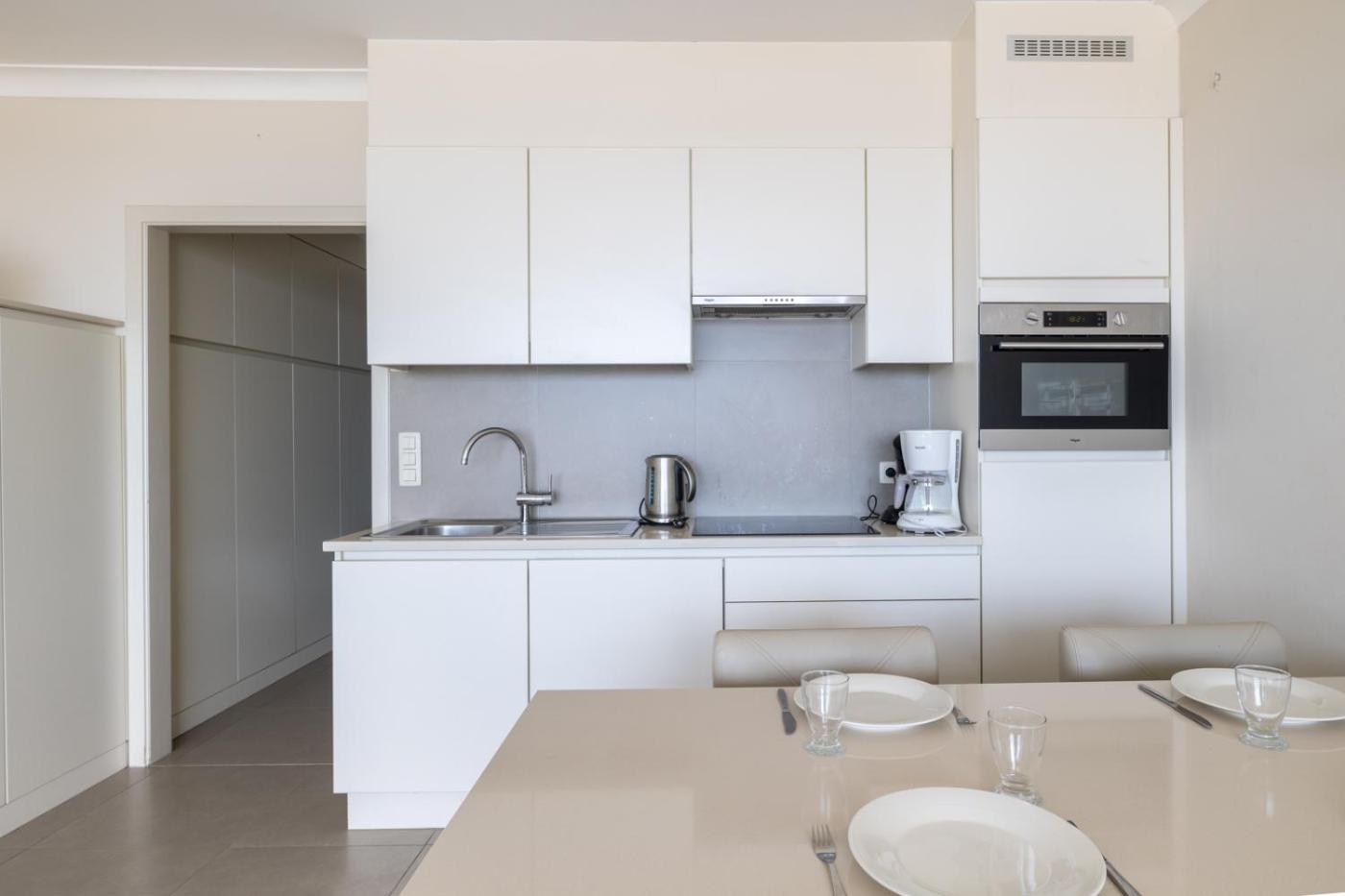 Studio. The well-equipped kitchen features a refrigerator, a dishwasher, kitchenware and an oven. The spacious studio provides a coffee machine, heating, a balcony with sea views as well as a private bathroom featuring a walk-in shower. The unit offers 2 beds and 1 futon.